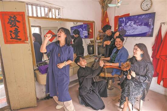 3月15日,适逢樟林火帝庙会举办期间,在汕头市澄海区樟林古港的起凤陈公祠,潮汕方言乐队野草寮举办了一场名为“老厝扮仙”的演出,将当晚的气氛推向高潮。
