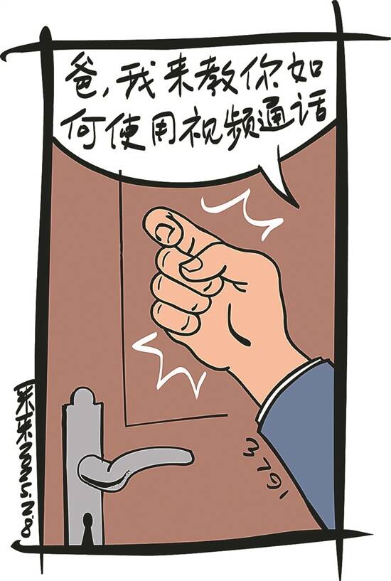 伟强一听这话,百感交集,他立马三口两口把饭扒完。然后走近父亲的房间,轻敲房门,对父亲说:“爸,我来教你,如何使用视频通话。” (黄超鹏)