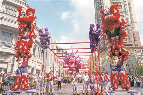新春期间,醒狮表演在永庆坊上演