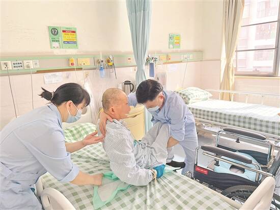 广东省工伤康复医院护理部主任谢粟梅表示,无陪护病房的实施不仅减轻了患者家庭负担,还改善了病区环境与秩序,降低了交叉感染风险。通过配备专业培训的医疗护理员,医院在日常照料中融入康复元素,帮助患者逐步实现自理。“医护工作不再常被打断,能更专注于医疗本身;护理员的工作则更规范,他们的职业认同感也增强了。”谢粟梅说。