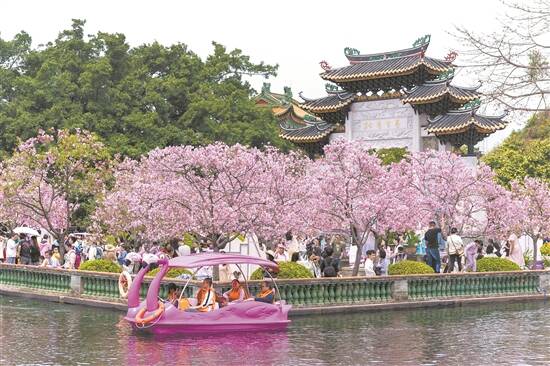 清明假期,“赏花经济”再次点燃。据统计,全市接待市民游客中,“乡村游”游客共计262.8万人次。樱花处处绽放,宝墨园、南粤苑、一方乐田农场、十八罗汉山森林公园等景区人气爆棚,借助社交媒体的传播,广州樱花绽放全网。