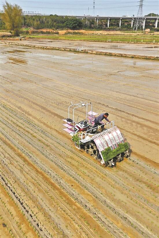 在广州市黄埔区的极飞超级农场,插秧机装上农机自驾仪后可“自动跑” 羊城晚报记者 周巍 宋金峪 摄