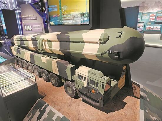 展馆中,“科技强军”展区以80余件装备模型呈现国防现代化进程:山东舰航空母舰战斗群模型以磅礴阵列震撼全场,展现中国海军从近海防御向远洋作战的战略转型;展厅上空,由歼-20隐身战斗机等国产新型战机组成的空中编队模型呼啸而过,彰显新时代航空工业的雄厚实力;射程达1.4万公里的东风-41洲际导弹模型与东风-17高超音速导弹模型,则共同构筑起多层次的战略打击体系。