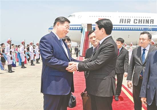 新华社河内4月14日电 当地时间4月14日中午,中共中央总书记、国家主席习近平乘专机抵达河内,应越南共产党中央委员会总书记苏林、越南社会主义共和国主席梁强邀请,对越南进行国事访问。