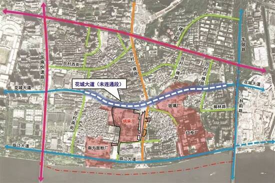此次调规,将花城大道中段线型向南偏移,协调地铁线位及现状权属地块、减少道路拆迁量,建成后将成为缝合珠江新城与金融城起步区的重要纽带。