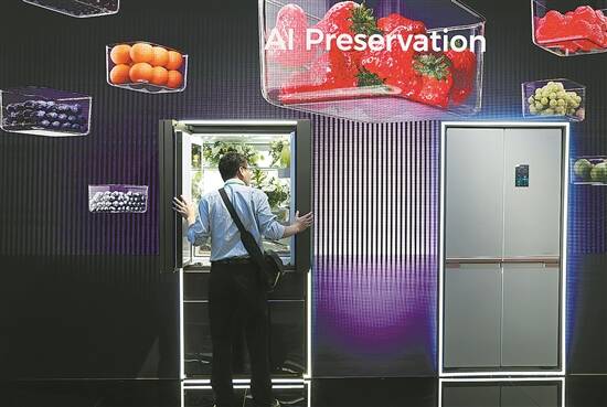 客商在广交会上参观了解一款智能冰箱 新华社发