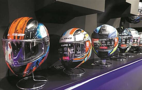 鹏程公司生产的各类型头盔产品 鹤山宣供图