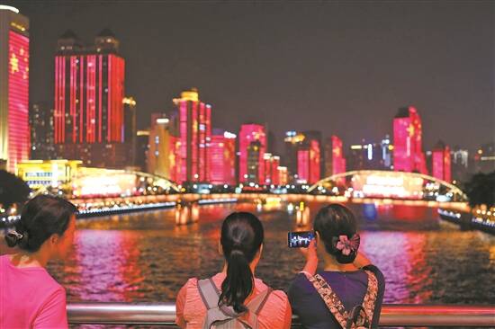 市民游客在珠江边欣赏夜景 羊城晚报记者 陈秋明 摄