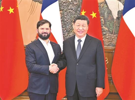 博里奇表示,智利高度重视对华关系。中国已成为智利最重要的贸易伙伴,双方合作造福了两国人民。智方将坚定奉行一个中国原则,期待与中方进一步拓展贸易、投资、人工智能等领域合作,高质量共建“一带一路”,密切人文交流,推动智中关系取得更多实实在在的成果。各国应坚持自由贸易和互利共赢,贸易不应只服务于一国私利,发动贸易战没有出路。智方愿同中方一道,坚定捍卫多边主义和联合国权威,坚持通过对话解决分歧,共同维护国际公平正义。