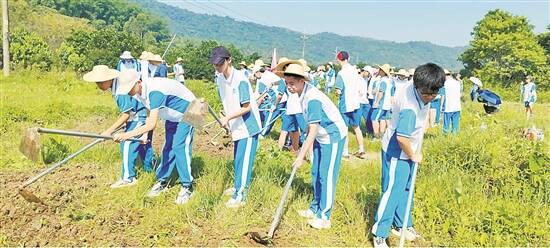 天河职业高级中学综合高中班的学生在学农
