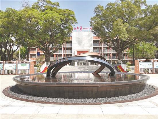 高品质的育人环境:徜徉林荫校道,新建的学校大门恢弘大气,时光之隙雕塑催人奋进,喷泉景观灵动唯美,似锦繁花浪漫满溢,魅力校园,如诗如画;邂逅课余生活,飞扬舞台歌声悠扬,舞步轻盈,钢琴角旋律流淌,随处可见的羽毛球场快乐飞扬,标准的运动场上活力绽放,青春校园,多姿多彩……