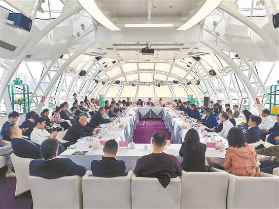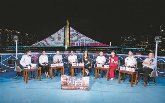 广州市政协委员、游船企业代表和有关职能部门负责人在珠江游船上开展现场协商