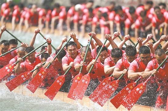 羊城晚报讯 记者徐振天报道:5月26日,广州车陂村端午龙舟赛激情开赛,车陂村迎来了一年最热闹的时候。当天上午,车陂涌两旁人头攒动,车陂村内12支龙船队在河涌里展开激烈角逐。