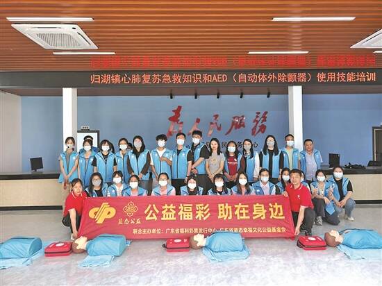 据了解,此次广东福彩“公益福彩 助在身边”活动支持的12台AED投放在基层社工站,进一步提升公共场所的应急救护能力,供广大市民群众在有需要时使用。同时,蓝态公益协助潮州市成立“公益福彩 助在身边”项目志愿服务队,开展急救培训30多场,让AED“救命神器”真正发挥作用,形成“人人会应急,个个会急救”的良好互助氛围。