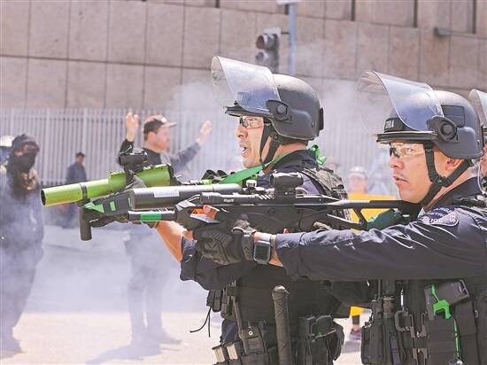 据新华社电 橡皮子弹与催泪弹齐飞,刺耳警笛与高声怒骂交织。洛杉矶警方和美国国民警卫队8日与抗议民众在洛杉矶发生激烈冲突,让人称“天使之城”的美国第二大城市的市中心陷入混乱。一名媒体同行在冲突现场问记者:这场景像不像在中东战乱地区?