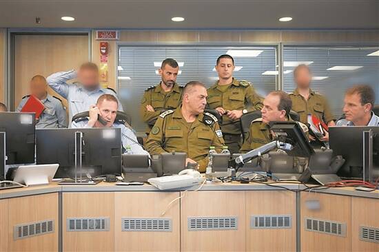 6月13日,以军总参谋长扎米尔(中)在以色列空军战情室监看以军对伊朗的打击