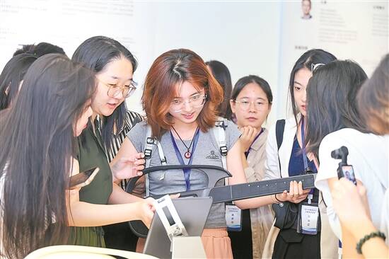 记者弹奏LiberLive未知星球的无弦吉他 羊城晚报记者 刘畅 摄