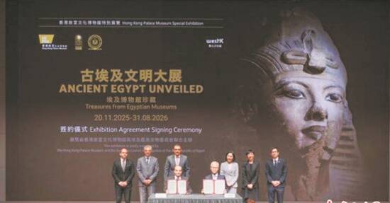 香港故宫文化博物馆与埃及最高文物委员会6月26日在港签订合作协议,双方将于11月推出特别展览“古埃及文明大展:埃及博物馆珍藏”。此展将汇集250件来自7家埃及重要博物馆的珍贵藏品,所有文物均首度在香港亮相,其中不少更是首次在埃及境外巡展。