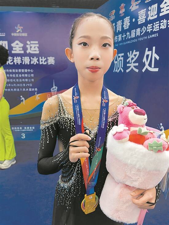 在广州市第十九届青少年运动会花样滑冰比赛的冰场上,12岁的刘玉萱如一颗闪耀的新星,吸引了所有人的目光。她不仅夺得女子少年甲组冠军,更因在6月29日的自由滑决赛中挑战顶级难度——后内结环四周跳(4S)而引发热议。