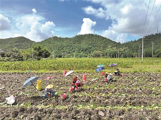 阳江市阳西县新墟镇土地资源丰富,土壤富含硒元素。当地种植户积极盘活利用土地资源,大力发展特色种植业,赋能乡村产业提质增效。近日,位于新墟镇的400余亩红芽芋迎来丰收,芋农们抢抓农时采挖芋头,为消费者的餐桌增添一道时令美味。