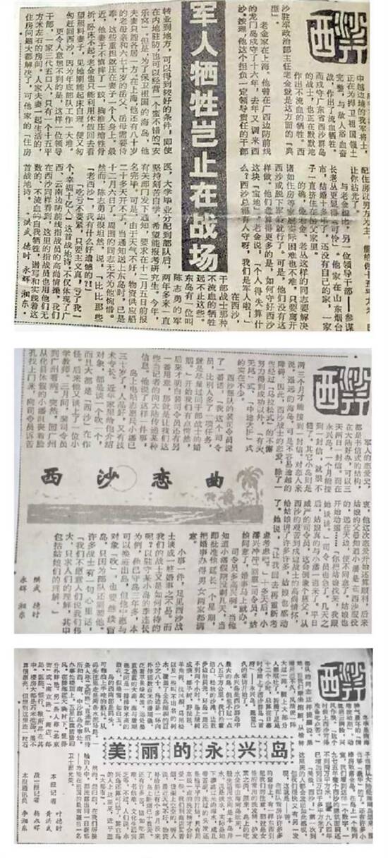 羊城晚报这组报道,掀起了全国媒体拥军热潮。两个月后,由中国记协组织,全国十多家媒体记者组成采访团赴西沙采风。李湘东作为采访团副秘书长再次随行。他发现,不少记者带着羊晚西沙行的剪报。