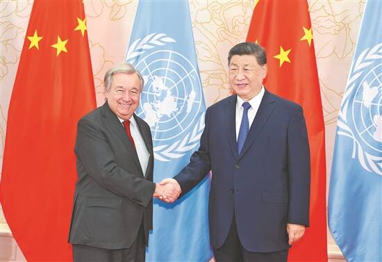 古特雷斯表示,感谢中国长期以来对联合国坚定有力的支持。当前,多边主义、国际法、联合国权威面临挑战,国际治理架构急需改革,重温80年前成立联合国的初心和价值理念正当其时。中国为维护国际法、确保国际法治作出重要贡献,成为捍卫多边主义的基石。联合国愿加强同中方的合作,维护联合国宪章宗旨和原则,捍卫国际关系基本准则,推进世界多极化,提高发展中国家的代表性,让联合国在国际事务中发挥更大作用。双方要加强在全球治理体系改革、人工智能、应对气候变化挑战等方面的合作,以更好服务人类共同福祉。