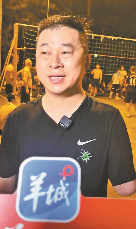 台山市民陈永坚因为意外失去了一条手臂,在排球场上,他是无人不知的“独臂大哥”。他的右手扣球力量十足,“我在这里打了十年八年了,特别喜欢晚上在这里打球,气氛特别好,我认识这里的每一个人!”陈永坚说。资深排球爱好者方浩瀚则告诉羊城晚报记者:“大家在场上可以随意组队,甚至两边不需要人数相等,只要想来打、愿意上,都能加入,特别自由,每逢节假日还会组织各种比赛。只要天气好,一周可以打足七天!”
