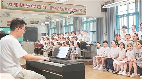 “我们彼此簇拥歌唱希望……”最近,广东揭阳揭西县塔头小学音乐教师郭湧腾又“发新歌”了。看完九三阅兵直播后,他和19位孩子专门录制了一首《向阳而生》(日出版),发布在他名为“音乐老师阿藤”的社交媒体账号上。视频中,孩子们沉浸在歌唱里,纯净的眼神,动听的歌声,赢得成千上万人点赞。