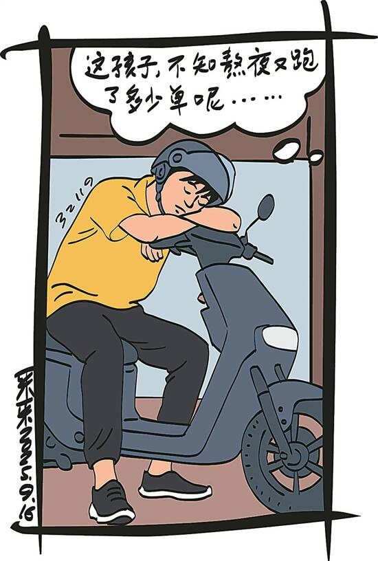 “六月天,孩儿脸,说变就变。”刚才天气还好好的,突然就来了场瓢泼大雨,把外卖小哥肖迪逼进了公园里的风雨廊。肖迪太累了,身子坐在电摩上,两脚支撑着,听着雨声竟然睡着了。