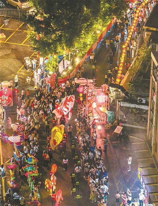 巡游之外,配套活动同样精彩纷呈。7日至8日的欢喜鱼市现场有得吃、有得玩、有得看,晚上还有乐队演出。活动期间,全国鱼灯展览也限时开放。