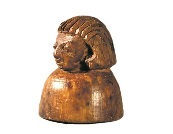 半身像,高鼻,深目,卷发,其面貌具有阿拉伯人的特征。器座为椭圆形,被认为是西亚地区常见的印章类型。专家推测它可能是阿拉伯商人私章的毛坯件。