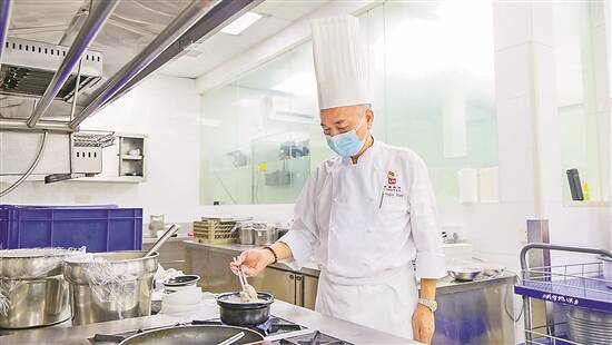 广州白云国际会议中心的厨房里,行政副总厨张志峰和几位厨师正在灶前忙碌。锅中,广府萝卜焖牛腩咕嘟作响、香气四溢。张志峰告诉记者,这道菜最受运动员欢迎。谈及为运动员烹饪的感受,他用一个词概括:“非常幸运。”