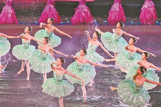 聚光灯下,舞者们如木棉绽放。“我们希望用芭蕾展现木棉从萌芽到盛放的生命力。”来自吉林的周瑜已在广州生活17年,这位“新大湾区人”坦言,此次表演颠覆了她对芭蕾舞的认知,“在水里跳舞,脚下的阻力会让动作迟滞,舞台又比剧场大得多,必须把肢体幅度放大到极致。”香港舞者梁婉婷对此亦有同感:“在四面环水的舞台上,每个角度都有观众,我们要让最远的观众也能看清指尖的颤动。”