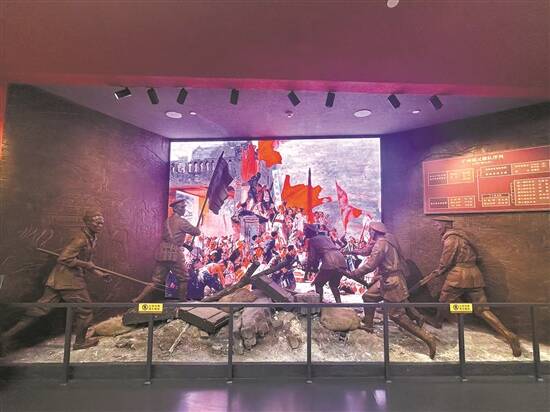 线下,展厅里声光电结合,全息影像让参观者身临其境。如展示的“策应南昌起义”环节,就是通过雕像和影像相结合,真实还原当时的情景。“挫败张国焘阴谋”则以场景还原和雕塑,展示叶剑英在重大历史关头作出的贡献。另外,游客也可以在任何一个展厅章节的节点,一键扫码,通过智慧语音讲解系统,详细听解革命历史故事。