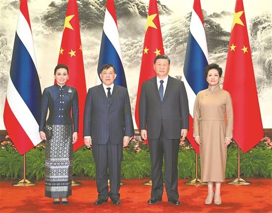 习近平指出,中共二十届四中全会审议通过“十五五”规划建议,将聚焦推动高质量发展,扩大高水平开放。泰国也处在国家发展振兴的关键阶段。中方愿同泰方加强战略对接,稳步推进中泰铁路等大项目合作,扩大进口泰国优质农产品,拓展人工智能、数字经济、航空航天等新兴领域合作,让两国人民从中泰合作中获得更多实利。要推动两国文化交融,促进人文交流,让两国民众越走越亲。中方愿积极支持泰国王室公益项目,加强减贫经验交流,助力泰国改善民生。