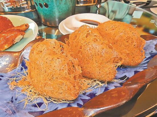 广州康莱德酒店中餐厅的金巢芋角、叉烧包也不错,那是中国著名点心大师、当代“点心女状元”徐丽卿的传授指导出品。蜂巢芋角是她参与申报的广州二代传承人制作技艺项目;而荔浦香芋角更是她全国烹饪大赛的获奖作品。