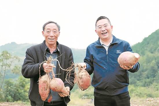 在贵州省铜仁市思南县三道水乡周寨村的红薯地里,村民王永海捧着刚采收的红薯,脸上洋溢着丰收的喜悦:“以前红薯主要用来喂猪,基本没有经济效益,现在一亩地能赚两千多元!”他手中的“泥疙瘩”,如今已成为带动3万群众增收的“金元宝”。