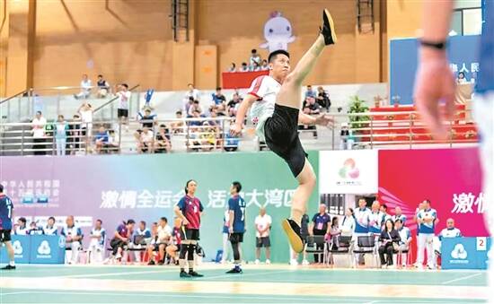 当天的比赛现场热闹非凡,500余名职工群众、毽球爱好者齐聚一堂,以球为媒同场竞技,彩色毽球在选手们的脚尖、膝盖间灵活跳跃,传递着运动的激情与快乐。更令人振奋的是,陈奕沛、麦宇添等十五运会金牌选手悉数登场,他们的亮相不仅为赛事增添了高光时刻,更让现场观众近距离感受到全运健儿的拼搏风采。“以前只能在电视上看全运比赛,现在在家门口就能和高手同场交流,还能圆自己的‘全运梦’,太有意义了!”一位参赛职工兴奋地说。