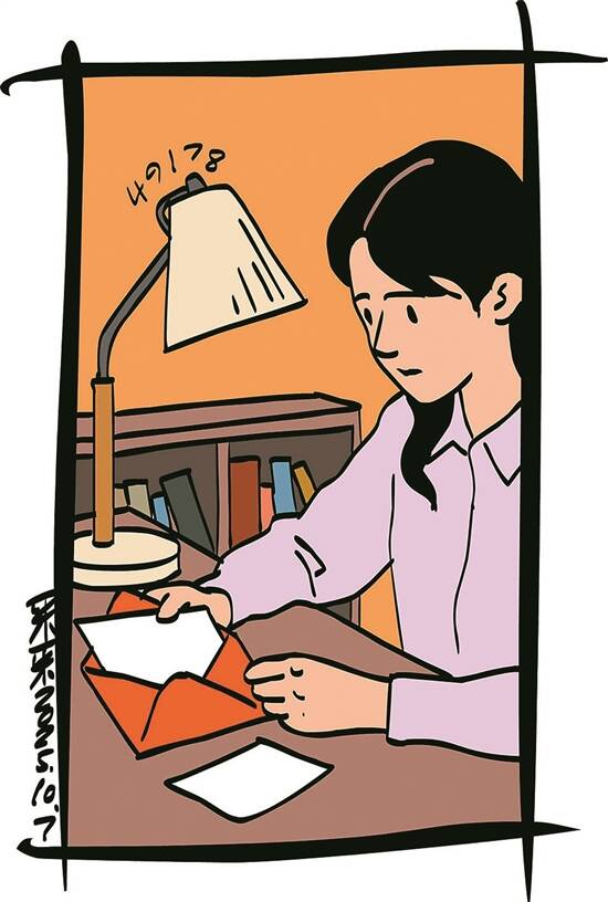 回到家,苏小梅慢慢打开信封,里面除了一封信,还有一张当天的彩票。彩票背面用铅笔画了一枝细瘦的梅花。信上写道:“小梅,这组号码是用我们初见的日子编的。3月14日,星期二,你碰倒杯子时是19时07分,那天你围巾上绣着的是八朵梅花。中不中奖不重要,这些数字替我记住了那些有梅花的傍晚。”