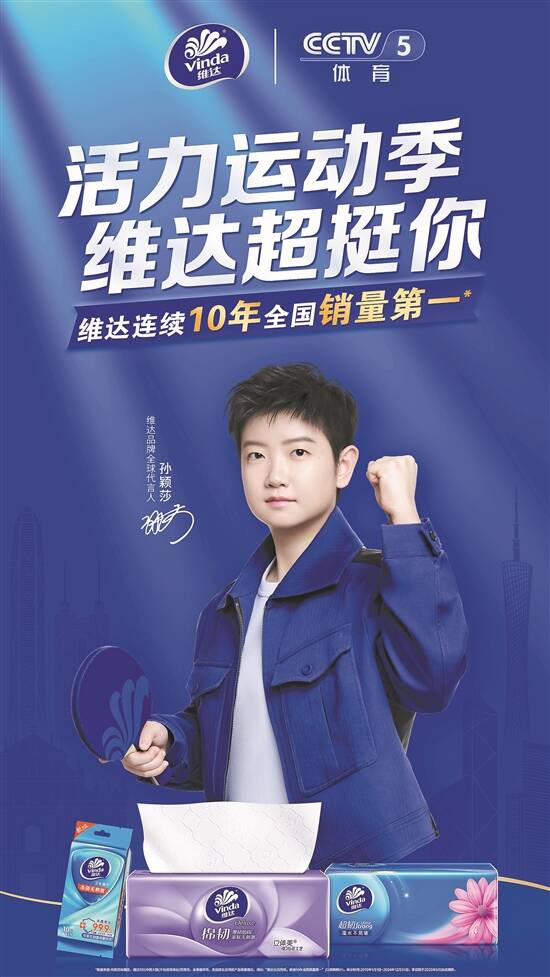 此次维达与孙颖莎携手登陆央视全运赛场,是对“韧性”的共同坚守与践行。作为跨代际的体育榜样,孙颖莎具有广泛的国民认知度,让品牌“韧性”理念得以穿透不同消费圈层,实现更高效的品牌传递。