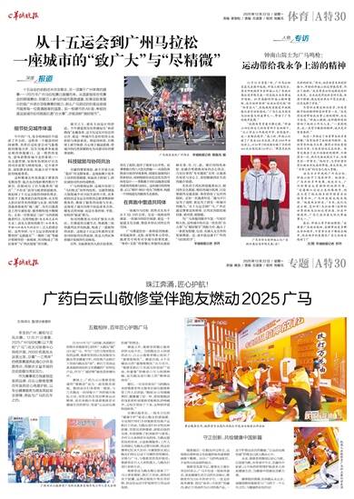 赛场上,广药白云山敬修堂组建的“敬跑团”成为一道亮眼风景线。跑团成员们身着统一服装,与万名跑友一同穿梭于广州的城市地标之间,用坚定的步伐诠释着运动精神,更在奔跑中传递着敬修堂对健康生活的倡导,传递“让运动远离伤痛”的理念。