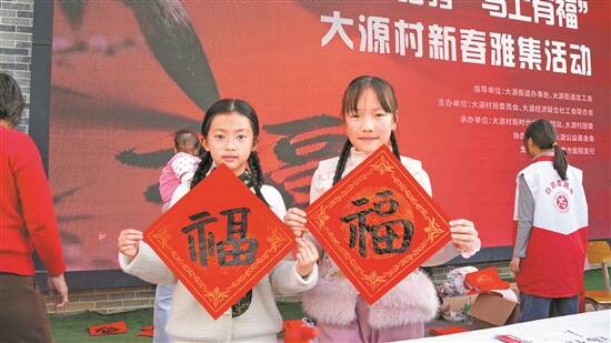 新春佳节临近,一系列民俗活动在大源村开展。在大源党群文化广场,大源村举办了多场新春雅集活动,联合书法爱好者、志愿者,现场挥毫送“福”。