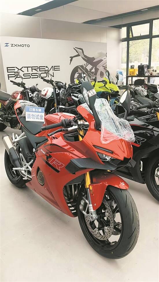 李经理向记者展示了张雪机车的产品线价格:老款500RR单摇臂店内有现车,裸车33680元;夺冠的820RR车型售价43800元,只能在线上小程序预定。李经理自豪地说道:“张老板自己研发的大马力发动机,135匹马力,最高版本150匹,打破了‘国产不如进口’的偏见,可以跟国外十几万、二十万元的进口车对比。”