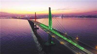 2017年12月21日,港珠澳大桥灯光调试,九洲航道桥塔桥亮起了彩色灯光 羊城晚报记者 林桂炎 摄 |