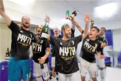 尤文七连冠后更衣室里疯狂庆祝 图/视觉中国 |