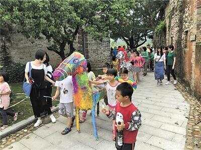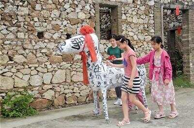 5月1日,广东云浮的古村兰寨正己学校内锣鼓喧天,迎来了三匹特殊的手工扎马,分别是:墨迹淋漓的“书法马”、斑斓明丽的“绘画马”和随心所欲的“涂鸦马”。为了纪念明朝张元勋平瑶有功,兰寨村有个传统的扎马节,多是在春节期间由乡民自己扎好纸马出游。这一回比较特殊的,不仅是在时间上有所不同,还有参与扎纸马的都是些可爱的孩子。 这是一个为期三天的城乡孩子艺术互动项目,邀请了广州市的13个家庭和本村的20个家庭参与,让孩子们在艺术滋养中,共同发现乡村之美。广东省廖冰兄人文艺术基金会会长廖陵儿力邀艺术家陈洲、张晓静夫妇全程策划,与梁晋、吴静和王旭东三位老师一起,为乡村的孩子带来一场特殊的视觉艺术体验“兰寨之约”。 兰寨古村落2015年被评为“中国最美乡村”,村里有8幢古建筑都位列广东省文物保护单位。兰寨拥有独特的粤西古建筑艺术和深厚的南江传统文化,正己学校、状元进士馆、光二大屋、非物质文化遗产展馆等历史文化景点让这里的乡村显得与众不同。“兰寨之约”正是围绕着这些文化景点进行设计和展开的。陈洲、张晓静以安宁庙的纸马为蓝本写了一篇童话,本次活动就以童话中的纸马为背景展开,涵盖了绘画、摄影、音乐、表演、书法各方面。 传统意义上的扎纸马,是用传统的薄彩纸剪花、层层糊出,这次课程立足于现代艺术的手法和传统的工艺,特别采用了孩子们的绘画和书法来黏糊,还有直接在宣纸为底的马身上进行涂鸦的。几匹纸马虽然还是沿用了村中老人扎制的骨架,最后的成品却个性鲜明,令大人们忍俊不禁。 活动中的音乐教育环节则从第一天的考察就开始了。老师让孩子们自己在村里寻找可以发出声音的“乐器”物品,可以是破砖烂瓦,也可以是破铜烂铁,或者其他生活物品,用这些村中常见的物品将音乐和想象结合起来。一位家长感触地说:“未必是乡村音乐,也可能是一种从熟悉中寻找到陌生感的体验。看到孩子们捡起瓦片、竹节、干树枝作为曲调的不同声部,从嘈杂、无序中试图寻找到旋律,真是动人。 在艺术的表现上,这次活动令城乡的孩子都展现出各自的优势。城里的孩子在书法、绘画上训练有素,登台表演时落落大方,而村里孩子对艺术的热情以及对音乐节奏感的领悟更令人惊艳!几天下来,他们同画、同写、同玩、同游、同演的场面,让人倍感人文艺术的珍贵。