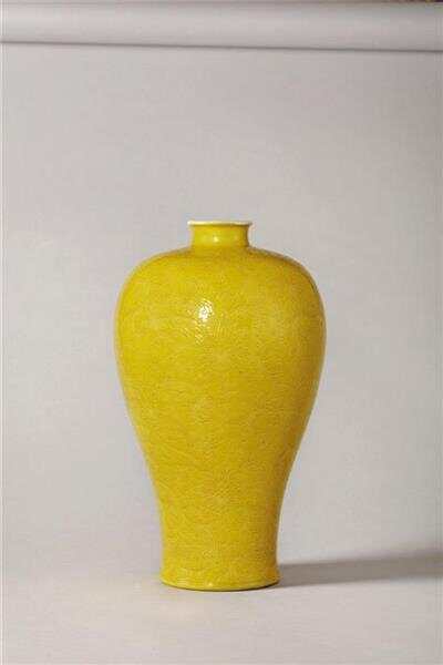 清康熙黄釉刻缠枝莲纹梅瓶 |