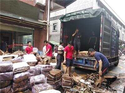 芳村茶叶市场,商家们忙着处理被水浸的茶叶 甘韵仪 摄 |