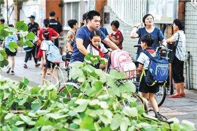 受台风“山竹”影响,停课后的广州中小学、幼儿园今天复课。图为海珠区草芳围滨江路附近一带,路上仍可见倒塌的电线杆和大树,周边的学生们已如常上学 羊城晚报记者 宋金峪 摄