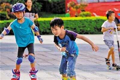小朋友们在广场上玩耍 羊城晚报记者 陈秋明 摄 |